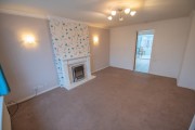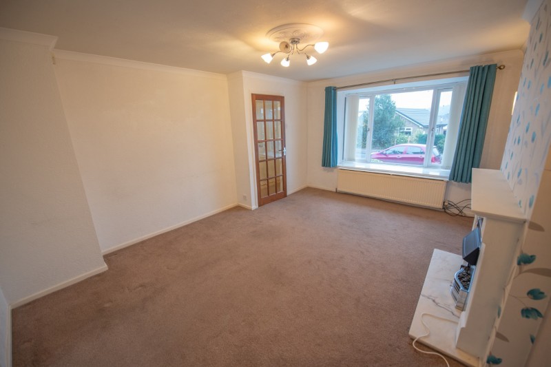 SITTING ROOM: 15’3” x 11’7” (max) with electric fire with timber surround and mantel with marble hearth & matching interior, coved ceiling, 2 wall light points and square bay window with open views.