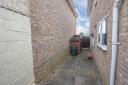 The rear low maintenance flagged garden has high level boundaries for privacy & security with an access gate leading to a driveway with parking for 2 cars.